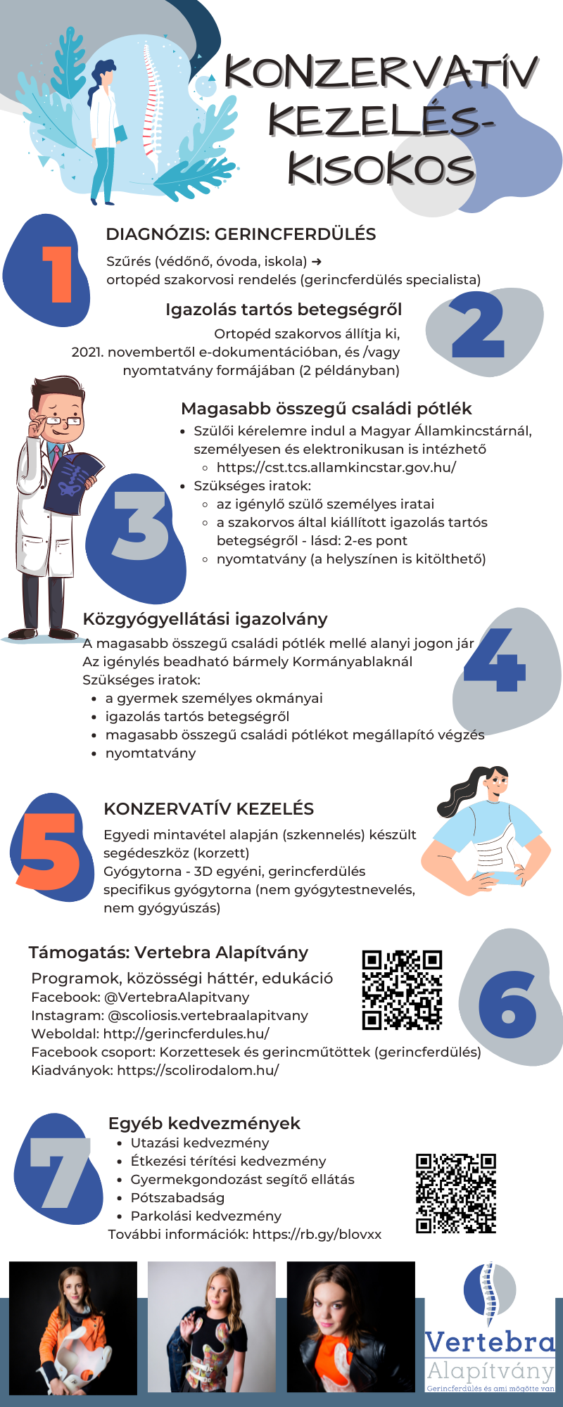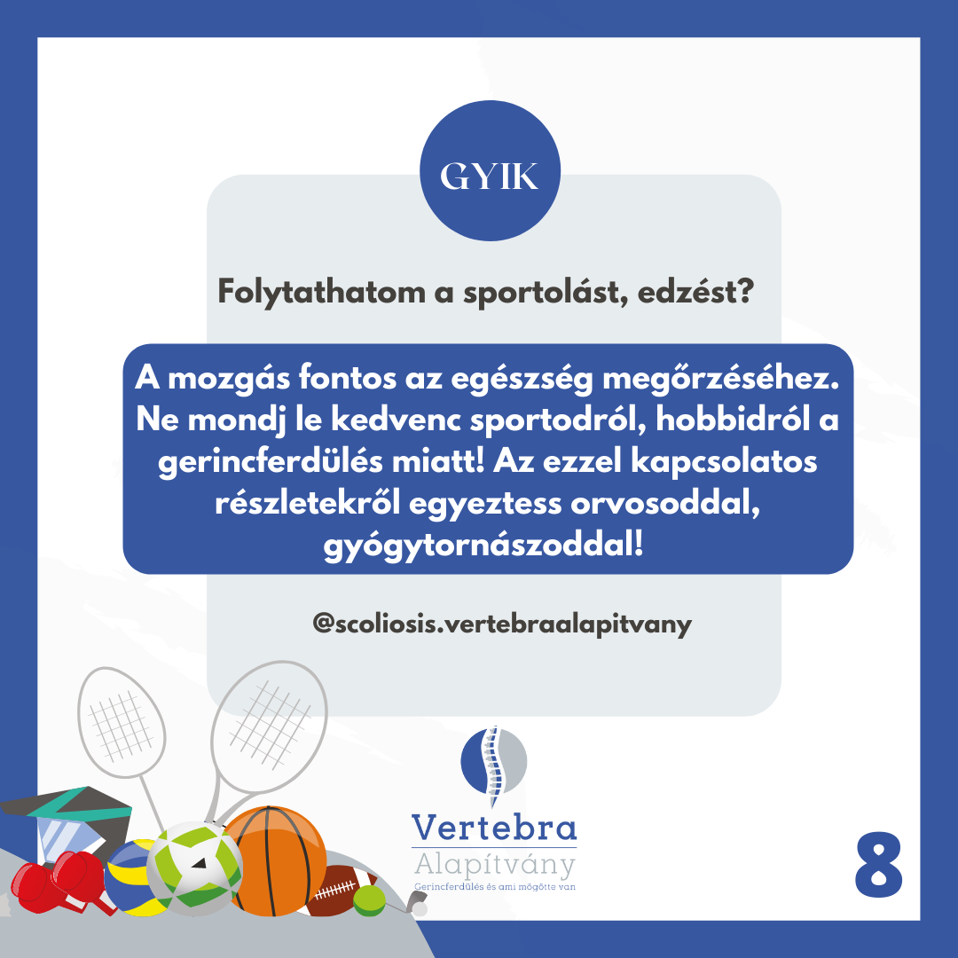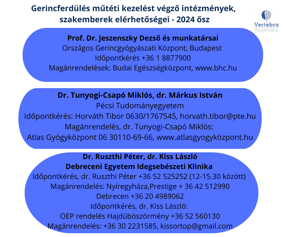In the sections on scoliosis and its treatment we quoted – literally or substantively – from the following books and articles: dr. Orosz Mária: Az idiopathias scoliosis konzervatív kezelése (in:Gyermekgyógyászat, 56. évfolyam 6. szám) Nagy Szilvia: Az idiopathias scoliosis korszerű, komplex mozgásterápiája (in:Gyermekgyógyászat, 56. évfolyam 6. szám) dr. Csernátony Zoltán: A scoliosis-csapda – tévedések, tévhitek és tévutak. Biomechanika, terápia, prognosztika és egy kis pszichológia (in:Gyermekgyógyászat, 56. évfolyam 6. szám) Udvarhelyi Iván által szerkesztett Fejezetek a felnőttkori ortopédia gyakorlatából, kiadta: Medicina 1998 dr. Vízkeleti Tibor: Az ortopédia tankönyve, Springer Könyvkiadó, Budapest, 1996., Az ortopédia tankönyve, szerkesztette dr. Barta Ottó, Medicina Könyvkiadó, Budapest, 1983 A Scheuermann-kyphosis és konzervatív kezelése (dr. Orosz Mária – dr. Tomory István cikke) in: Orvosi Hetilap 1982. 123. évfolyam, 46. szám A kongenitális scoliosis (dr. Orosz Mária – dr. Tomory István cikke) in: Orvosi Hetilap 1986. 127. évfolyam, 13. szám 10 kérdés a Scheuermann-féle betegségről (dr. Orosz Mária cikke, in: PRAXIS, 1994. 3. évf. 5. szám) Köszönjük dr. Orosz Mária, dr. Temesszentandrási Hedvig és Marlok Ferenc segítségnyújtását a szakmai oldalak összeállításában.