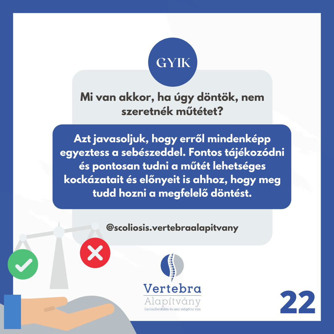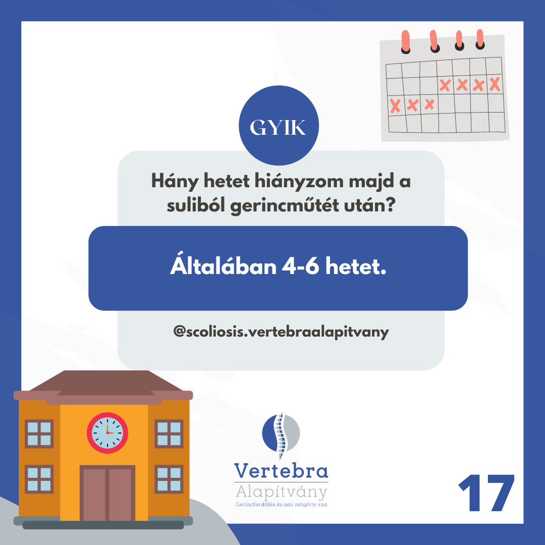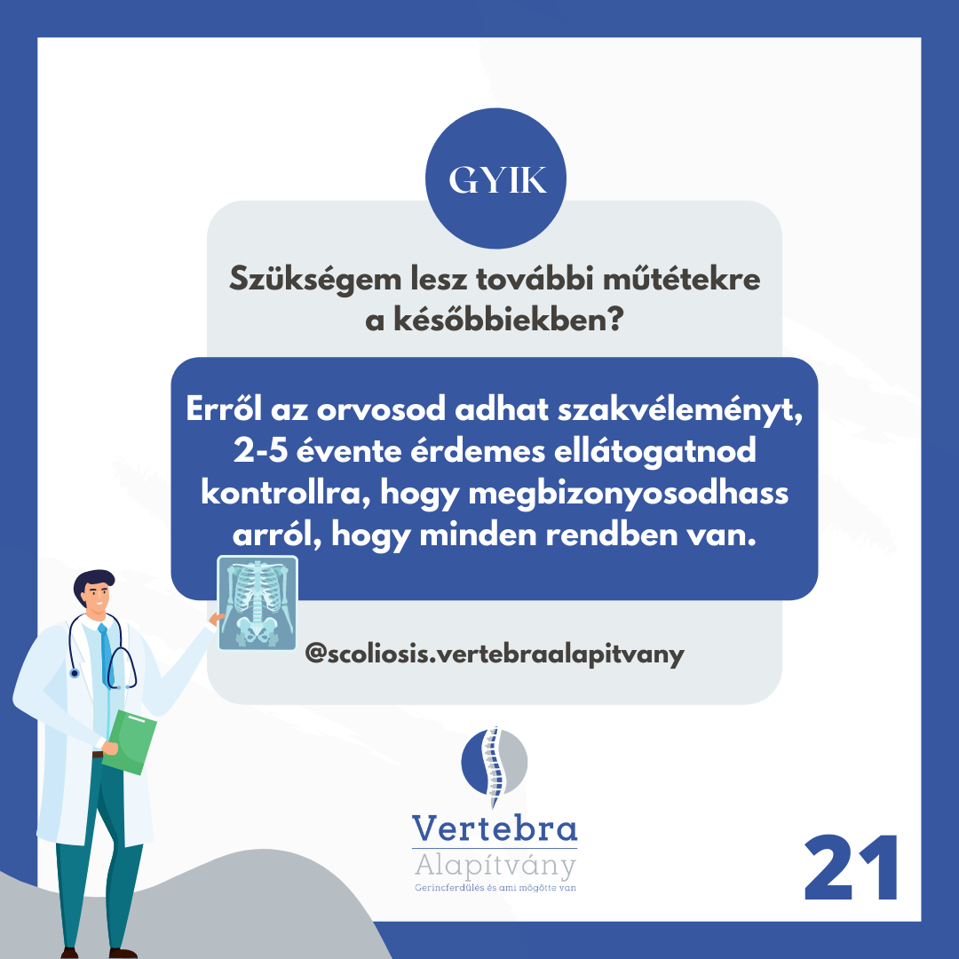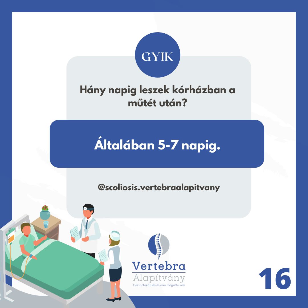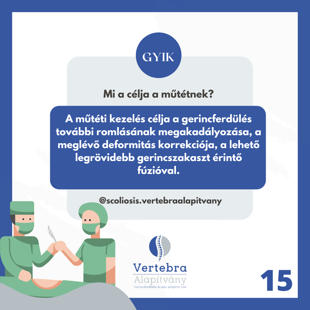 Correction happens with an efficient and successfully long used method: with the help of titanium screws and rods, creating arthrodesis. The surgery itself is extremely challenging for children: it’s 4-8 hour long, risky and the possibility of blood loss is relatively high. The risk of the operation: spinal cord injury which causes lower limb paralysis, bowel and urinary disorders. As a matter of fact, we use a variety of specific tools and methods to prevent this risk.* G(Source: Gyermekgyógyászati Továbbképző Szemle XXII évf. 2017 szeptember 167-171. o)