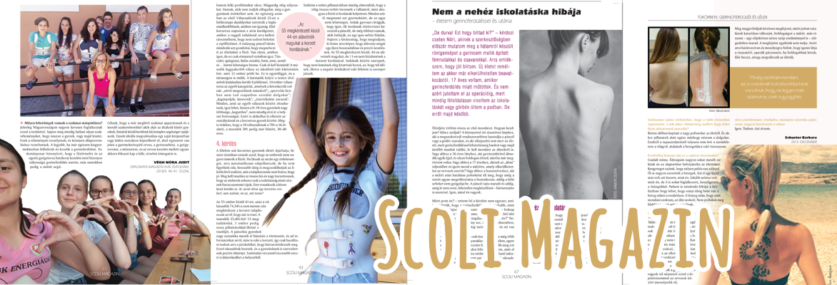 A VERTEBRA ALAPÍTVÁNY rendszeresen jelentet meg Scoli Magazinokat, amelyek kereskedelmi forgalomba nem kerülnek, de az érintettek hozzájuthatnak a rendelőkben, kórházakban, s szakmai partnereinknél.